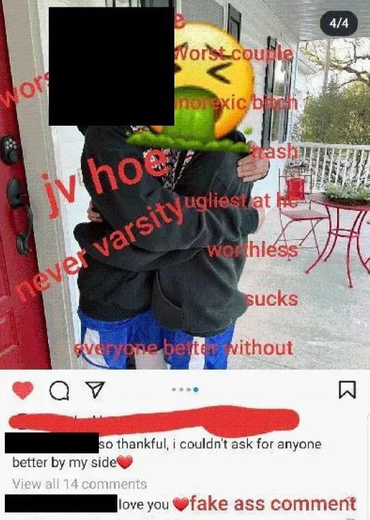 但到了2020年秋天,也即是欧文和阿什莉升八年龄时,矛盾爆发了 —— 匿名短信卷土重来,两个孩子再次收到了一大堆奸巧抨击,不外大大宗依旧只针对阿什莉,说欧文在背后骂她,还劈叉其他女孩,用词不胜入目: