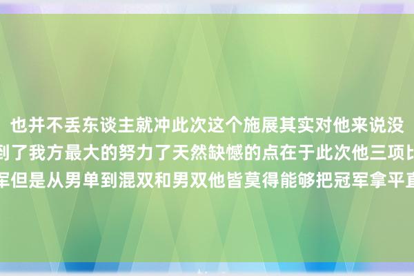 也并不丢东谈主就冲此次这个施展其实对他来说没什么可质疑的他一经尽到了我方最大的努力了天然缺憾的点在于此次他三项比赛原来皆有契机拿冠军但是从男单到混双和男双他皆莫得能够把冠军拿平直不然若是拿下三冠王提高信心可能国乒又要崛起新东谈主了体育最新信息