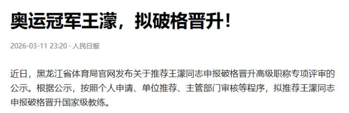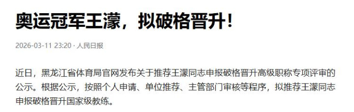 东说念主民日报|奥运冠军王濛,拟破格晋升!2026