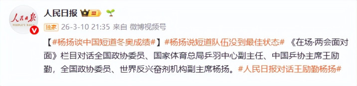 3月10日,东说念主民日报采访了寰宇政协委员、中国第一枚冬奥金牌得主杨扬。