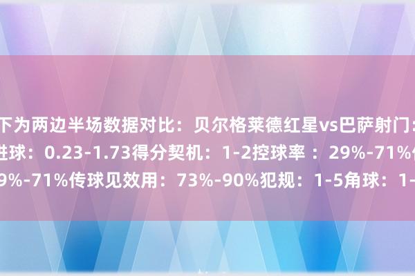 以下为两边半场数据对比:贝尔格莱德红星vs巴萨射门:2-12射正:1-4预期进球:0.23-1.73得分契机:1-2控球率 :29%-71%传球见效用:73%-90%犯规:1-5角球:1-4 体育最新信息